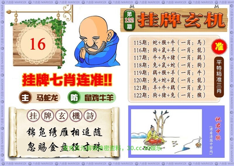 ◎开奖日必开生肖→→戊戌:马虎龙猴猪羊