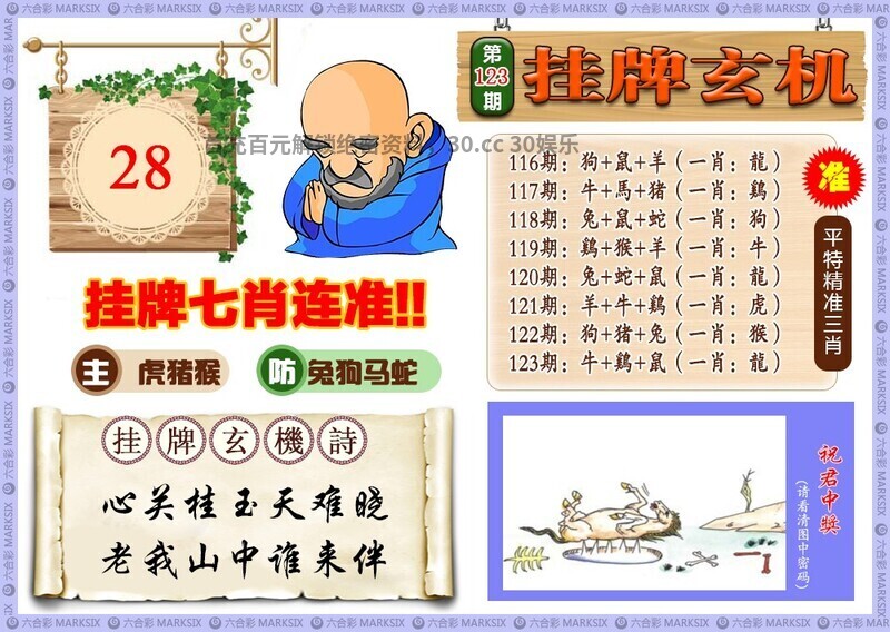 123期:⑧肖【猴兔虎马牛龙鼠鸡】开:羊23