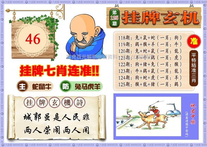 125期正版彩图挂:05爆:马 挂牌成语:罄竹难书 挂牌出肖:羊蛇虎鸡狗猴。